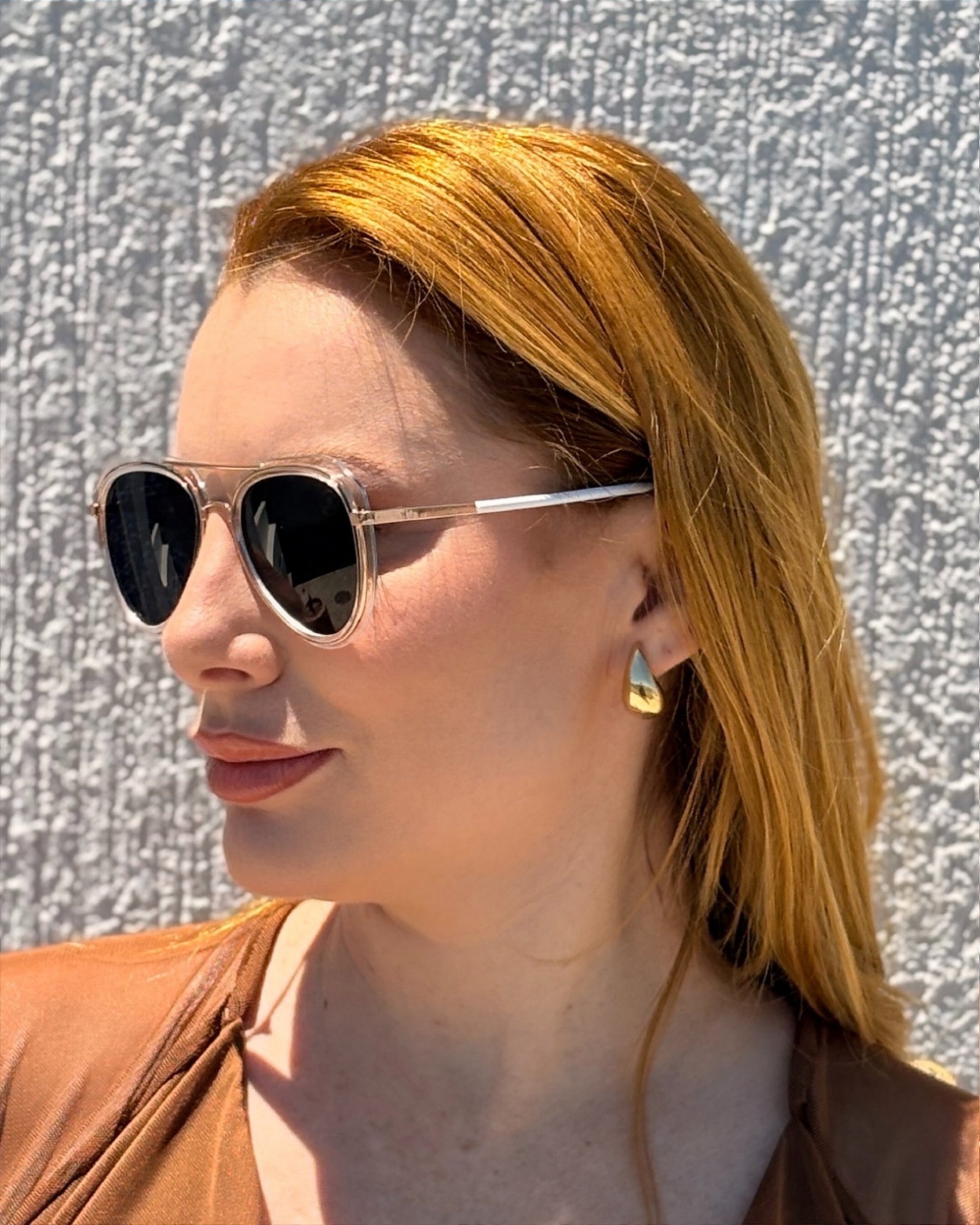 ÓCULOS DE SOL AVIADOR TRANSPARENTE DETALHES ROSE HASTE BRANCA