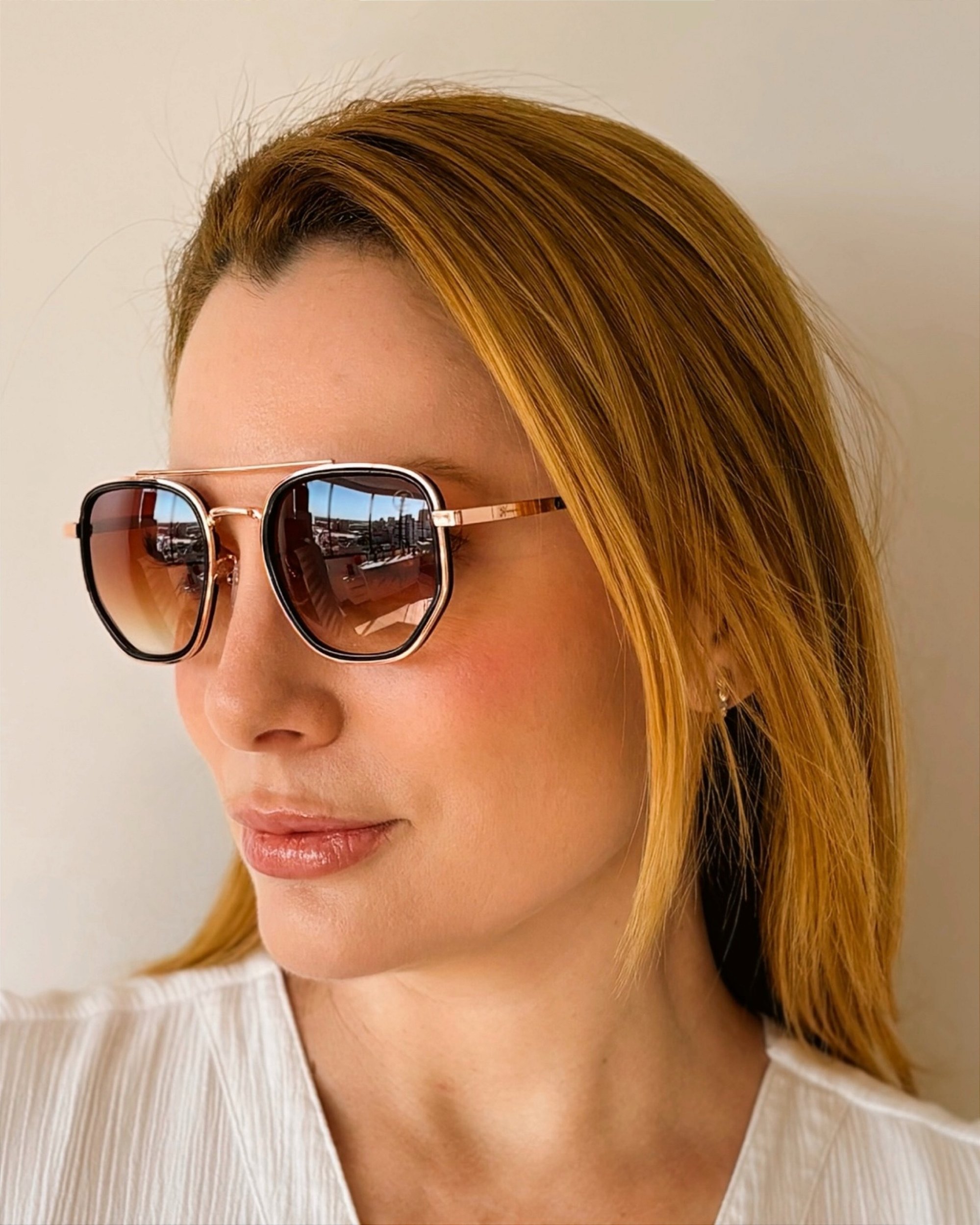 ÓCULOS DE SOL MARROM DEGRADÊ HASTES DOURADAS