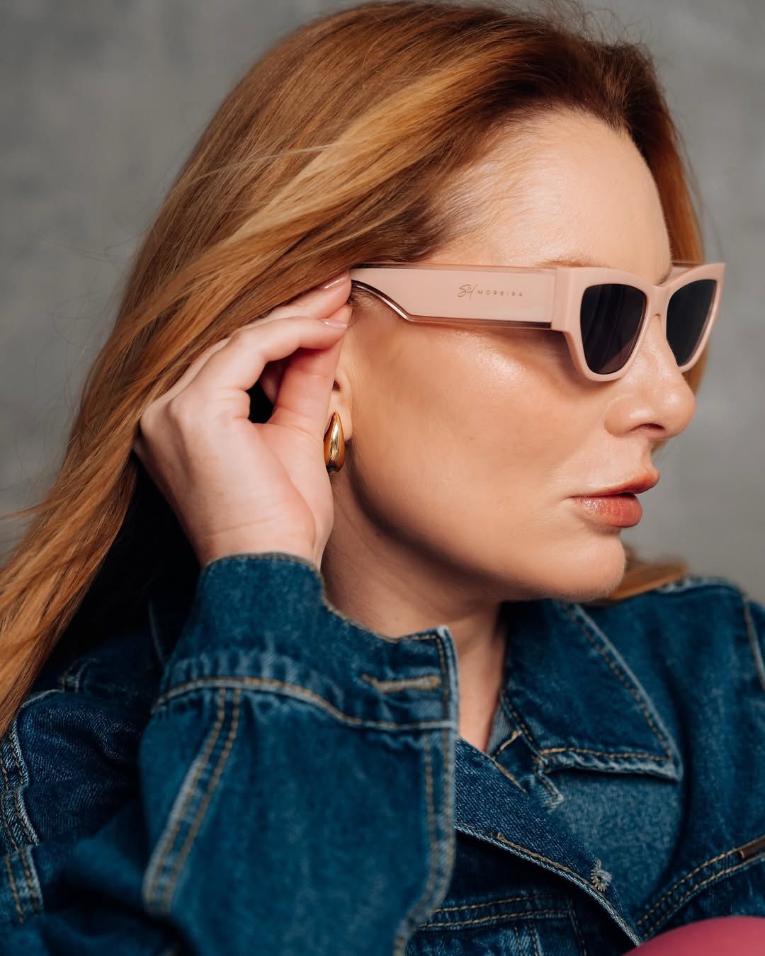 ÓCULOS DE SOL ROSA CLARO COM LENTES PRETA
