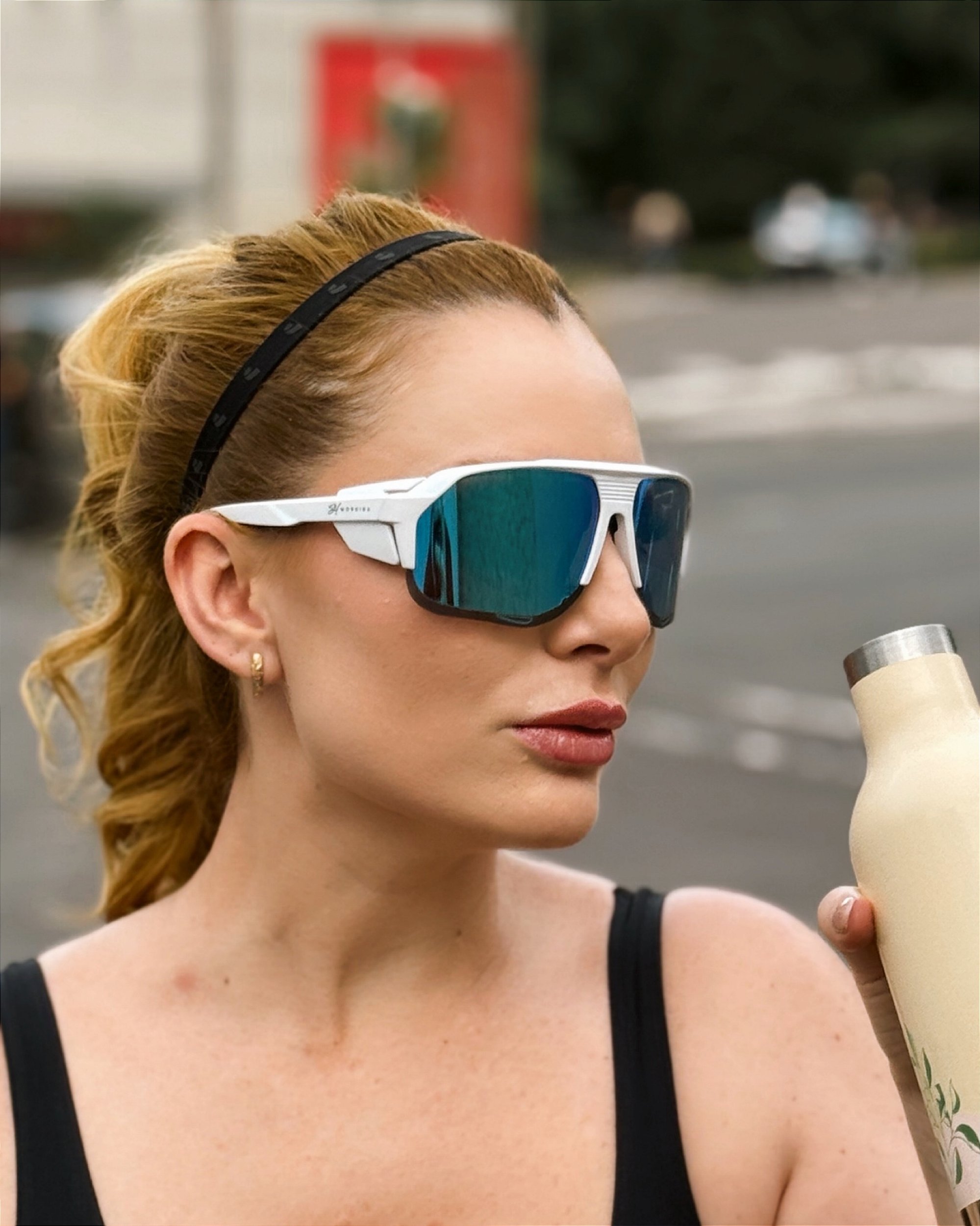 Os Óculos Esportivo Branco com Lente Espelhada Azul oferecem desempenho elevado para sua prática de exercícios ao ar livre. A lente espelhada azul hiper aumenta o contraste e a definição das cores, proporcionando uma visão mais clara e nítida mesmo sob diferentes condições de luz. Com proteção UV400, eles garantem 100% de bloqueio contra raios ultravioletas, protegendo seus olhos durante os treinos ao ar livre. O design branco do aro combina com estilo e funcionalidade para os mais exigentes.