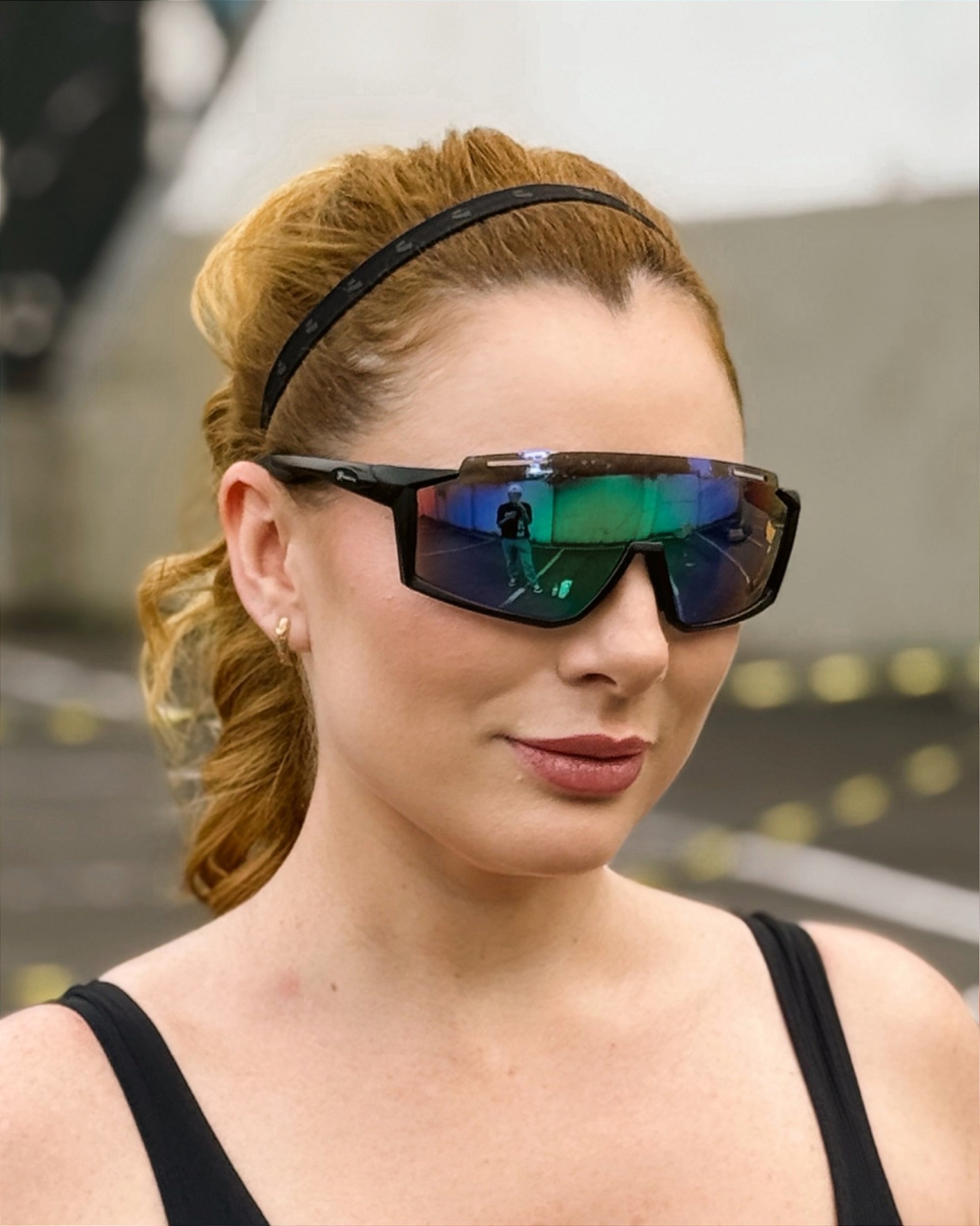 Os óculos de sol esportivo apresentam design moderno e lentes espelhadas nas cores verde e roxo, ideais para proteção em atividades ao ar livre como ciclismo e corrida. Seu formato envolvente oferece amplo campo de visão e proteção contra raios solares e detritos, garantindo conforto e segurança. Produzidos com material leve e resistente, proporcionam ótima durabilidade sem comprometer o desempenho durante o uso intenso.